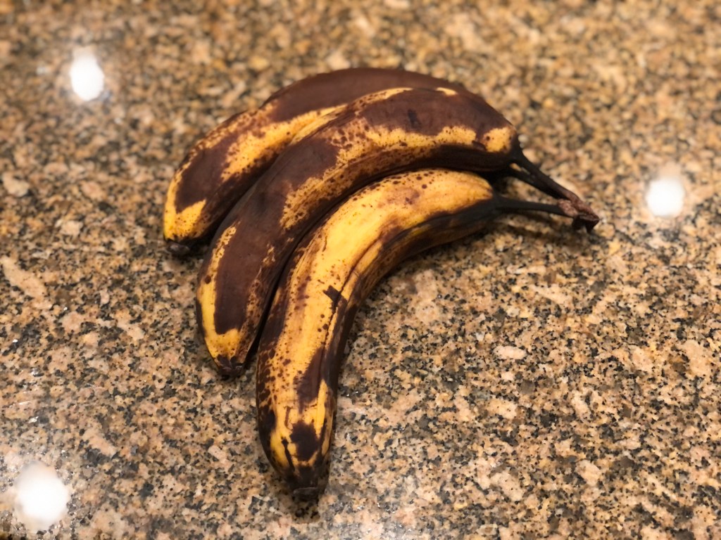 In a separate bowl cream together butter and brown sugar. Make sure the sugar doesn’t have lumps in it. Stir in the eggs, then the mashed bananas (with fork) until well blended.