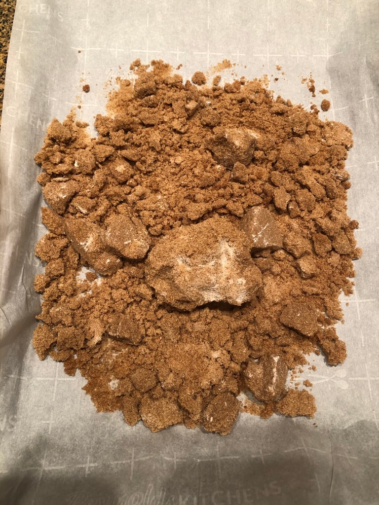 If you’re like me and you haven’t used brown sugar in a while, you might discover that it turned into one hard giant ball. This means the sugar wasn’t stored in a air sealed container and the humidity from the air made it sticky.