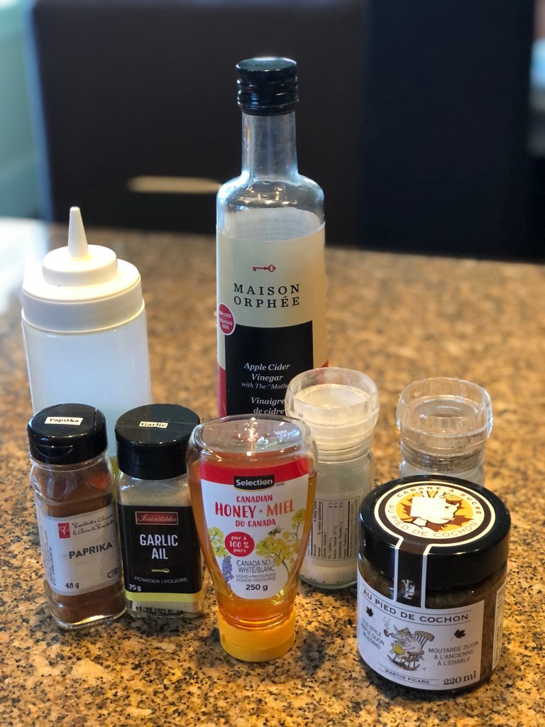 There is a secret ingredient in this marinade: Maple Dijon mustard from Au Pied de Cochon (you can purchase it here). I guess you can try a combination of Dijon mustard with full grains and maple syrup.