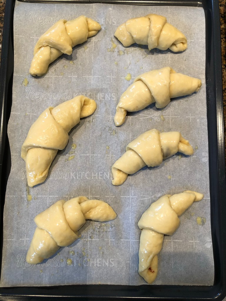 Let the croissant rise for about 20-30 minutes. While the croissants rise, preheat the oven to 350 F.