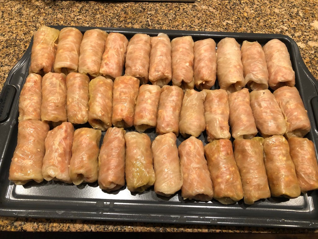 This is a traditional Romanian recipe that requires some ingredients not easy to find. The key ingredient is sauerkraut, but a whole cabbage that you can cut as needed. Some people do sarmale with fresh cabbage that they boil. Personally I don’t like it as it becomes too sweet. The sauerkraut (cabbage) balances nicely the sweet filling, so in then end you get a meal that you can’t stop eating.